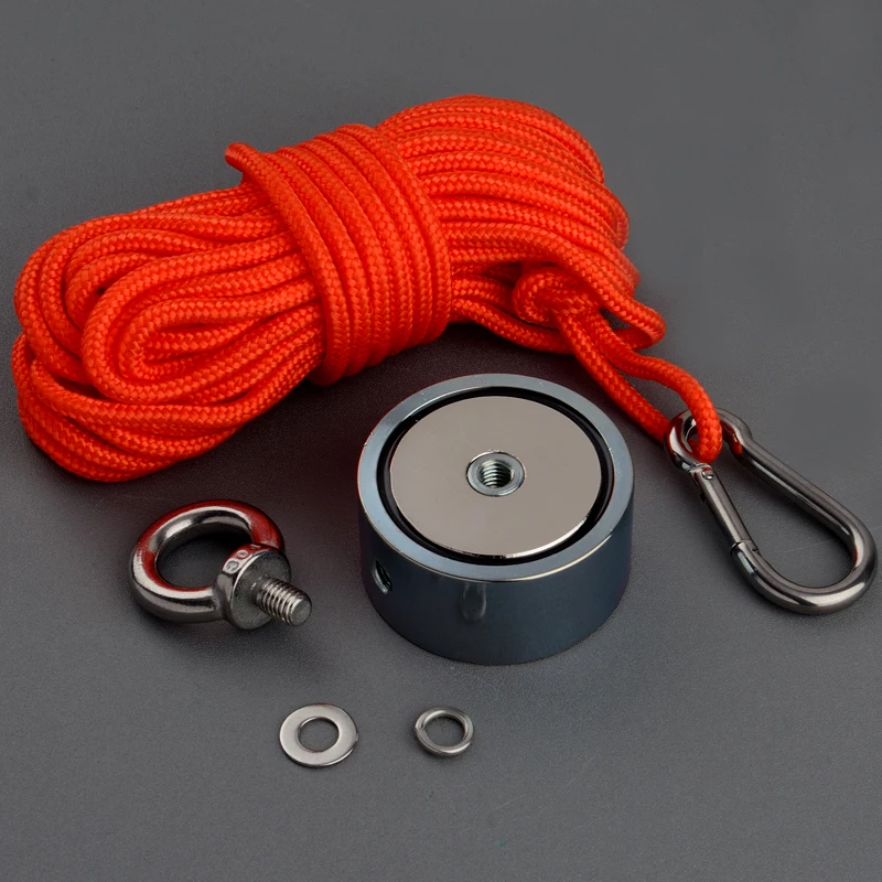 Premium Powerful Neodymium Magnet Double Side Search Magnet with Ring Strong Salvage Fishing Magnetic Material Base 0-150kg*2 holderGet 45% OFF, VALID UNTIL TOMORROW