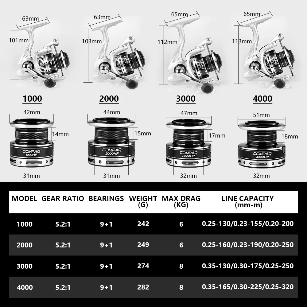 If You search information for Anyfish COMPAQ Spinning Fishing Reel 1000/2000/3000/4000 model Gear Ratio 5.2:1 max drag 6kg/8kg 9+, then Anyfish COMPAQ Spinning Fishing Reel 1000/2000/3000/4000 model Gear Ratio 5.2:1 max drag 6kg/8kg 9+ may be make you like